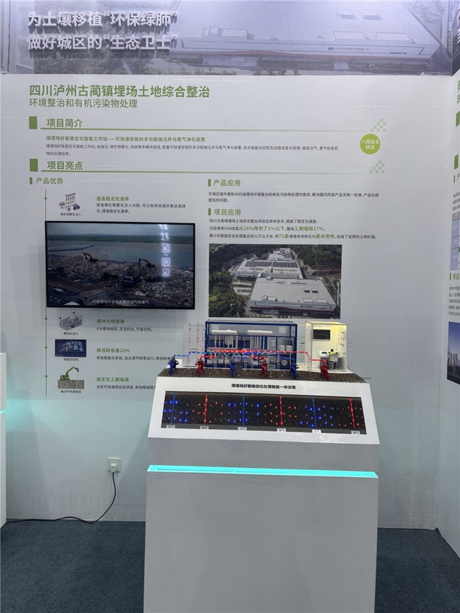 应对“垃圾围城”背景下的城市更新需求,公司首创的填埋场好氧稳定化处理智能一体设备,有效地破解了国内同类装备“缺乏统一标准、产品化程度低”等行业瓶颈与难题。该设备模块化程度高、灵活机动,节省空间的同时,搭配快速插拔的多功能抽注井与尾气净化装置,结合智能化控制及远程信息化管理,可将稳定化速率提高25%、耗电量降低20%。同时创新性采用了在向垃圾堆体注气的同时雾化注入好氧微生物的方式,大大加快好氧菌的繁殖速度,使填埋场能够更快地达到稳定状态,有效减少甲烷排放、缩减稳定化工期,综合处理成本降低18.8%,为填埋场环境整治与有机污染物处理提供高效装备支持。